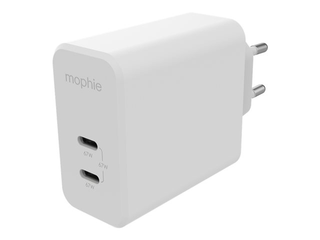 mophie speedport 67 - Strømforsyningsadapter - 67 Watt - Fast Charge, PD - 2 output-stikforbindelser (24 pin USB-C) - hvid - Europa