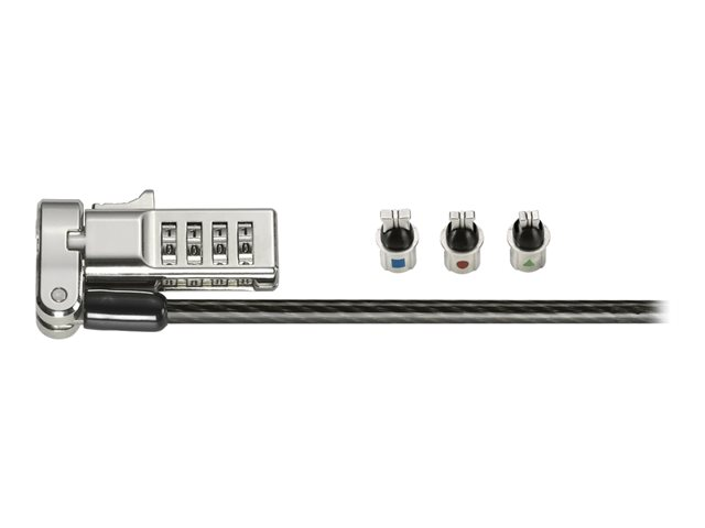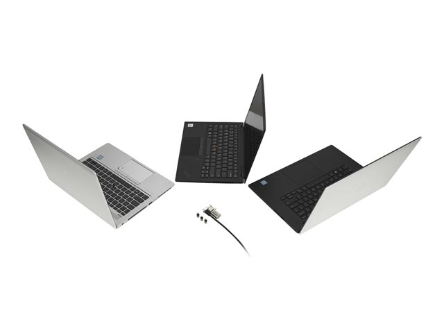 There's one combination cable lock that does it all. The Universal 3-in-1 Combination Laptop Lock fits any laptop security slot - standard, nano, and wedge-shaped - helping to "future-proof" your locking solution. Resettable 4-number dial with 10.000 possible combinations, and carbon steel cable provide strong security against theft attempts. Additional features include Register and Retrieve for quick, secure, and easy combination retrieval.