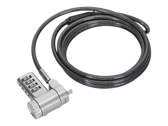 The Targus DEFCON security cable lock is a comprehensive security solution designed to protect a wide array of devices. Its 360° head rotation and cut-resistant, sleeved cable offer both flexibility and strength, ensuring your devices are safeguarded against theft. Made from durable galvanized steel, it stands up to cutting attempts, providing peace of mind in any setting. Whether for desktops, docking stations, monitors, or notebooks, its universal serialized combination lock, along with T-Bar, nano, and wedge lock types, offers versatile compatibility and protection. Secure your devices with confidence, knowing they are protected by the Targus DEFCON security cable lock.