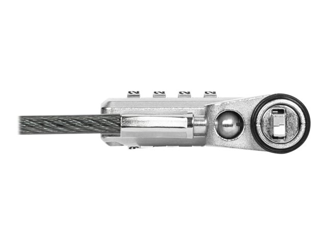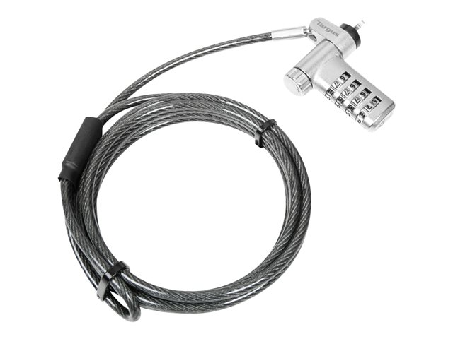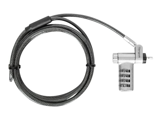 The Targus DEFCON security cable lock is a comprehensive security solution designed to protect a wide range of electronic devices. Made from cut-resistant, galvanized steel, it offers robust protection against theft and unauthorized access. Its universal design is compatible with desktops, docking stations, monitors, and notebooks, ensuring your valuable devices are secure in any environment. The lock features a 360° head rotation and a sleeved cable, providing both flexibility and convenience, allowing for easy installation and access without compromising security. Whether at the office, in public spaces, or at home, the Targus DEFCON lock is an essential accessory for safeguarding your electronic devices.