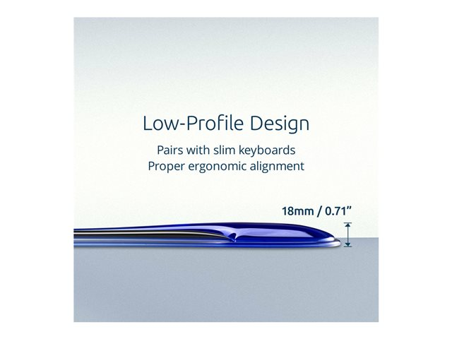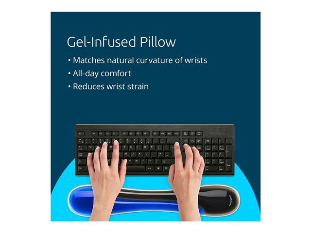 The Kensington Duo Gel keyboard wrist rest enhances comfort during extended computer use with its slim design and gel-filled construction. The soft gel material provides cushioned support for wrists, reducing fatigue while typing. Its easy-to-clean surface ensures maintenance is hassle-free, making it suitable for everyday use. A low-profile design helps maintain ergonomic alignment, while the ventilation channel promotes airflow, keeping hands cool and comfortable throughout the day.